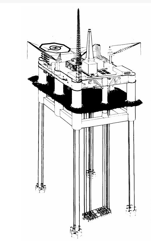 形式類似于半潛式平臺,在此基礎(chǔ)上增加張力腿支撐于海底。