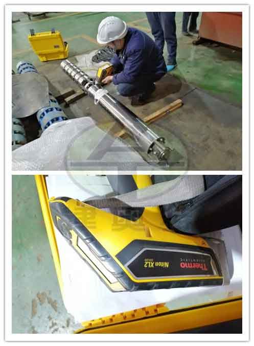 ***近客戶訂購(gòu)了一臺(tái)不銹鋼316材質(zhì)深井潛水泵,包括葉輪、導(dǎo)流殼、閥體、泵軸、進(jìn)水節(jié)、電機(jī)外殼、電機(jī)上下導(dǎo)等均為不銹鋼316材質(zhì)?,F(xiàn)生產(chǎn)完畢,客戶來廠驗(yàn)貨,竟帶來了一臺(tái)造價(jià)幾十萬的手持合金光譜儀,對(duì)水泵材質(zhì)進(jìn)行了檢測(cè)??蛻糇凶屑?xì)細(xì)的對(duì)水泵各部件進(jìn)行了全方位檢測(cè),有些部件材質(zhì)超出客戶預(yù)期,結(jié)果令人滿意。