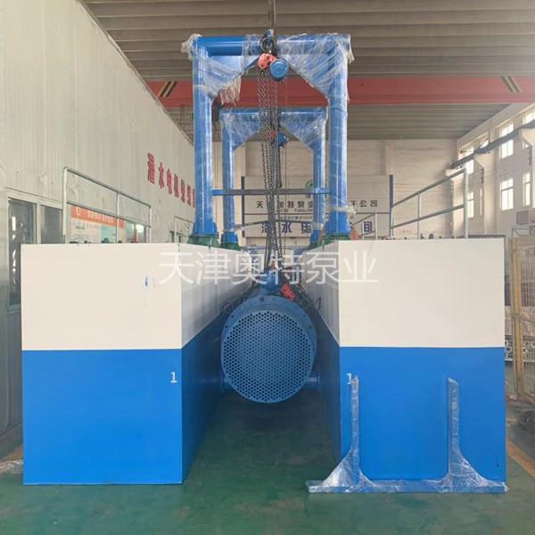 浮箱式潛水泵顧名思義是潛水泵通過鋼制浮箱提供浮力懸浮在水面以下,浮箱式潛水泵可隨著液面的漲落上下浮動。一般一臺潛水泵配兩個鋼制浮箱,浮箱上面是操作臺,有防護(hù)欄對工作人員進(jìn)行保護(hù)。浮箱中間潛水泵上方安裝前后兩個手動吊裝葫蘆,便于潛水泵的起吊檢修。